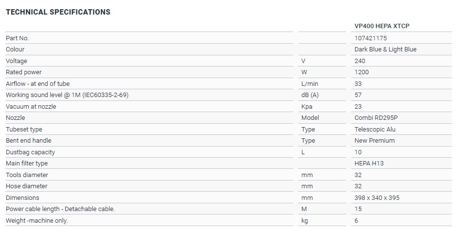 VP400 HEPA CORDWINDER